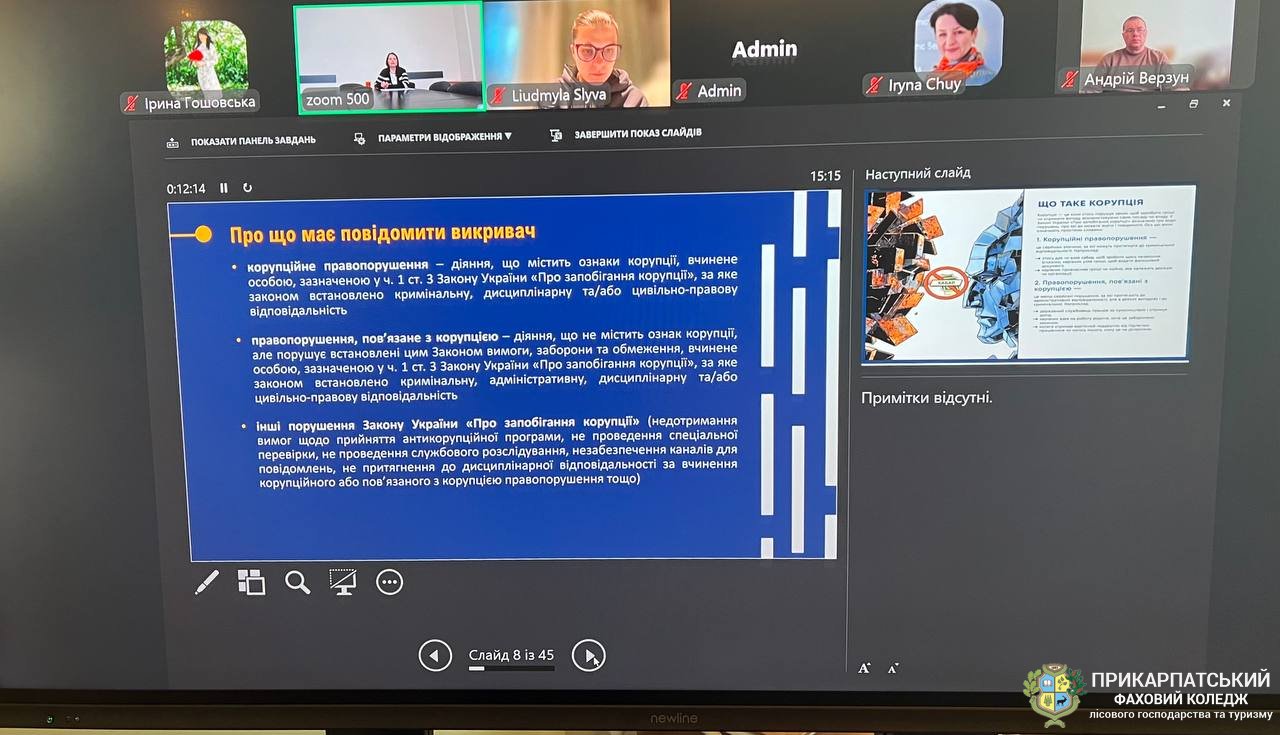 Тема викривачів корупції часто оповита міфами, але для сучасної молоді - це інструмент захисту своїх прав та чесного імені закладу. Участь у таких заходах є фундаментом правової обізнаності майбутніх фахівців лісового господарства та туризму.